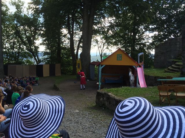 Diese Pippi Langstrumpf düprften wir uns natürlich nicht entgehen lassen. Die Aufführung fand am 21.06.2015 bei schönstem Wetter auf dem Schwarzwirberg in Rötz statt. Die Malteser fuhren uns in bewährter Weise mit Bussen hoch, die Veranstalter hatten extra für uns "Stammgäste" bei den Vorstellungen Plätze reserviert